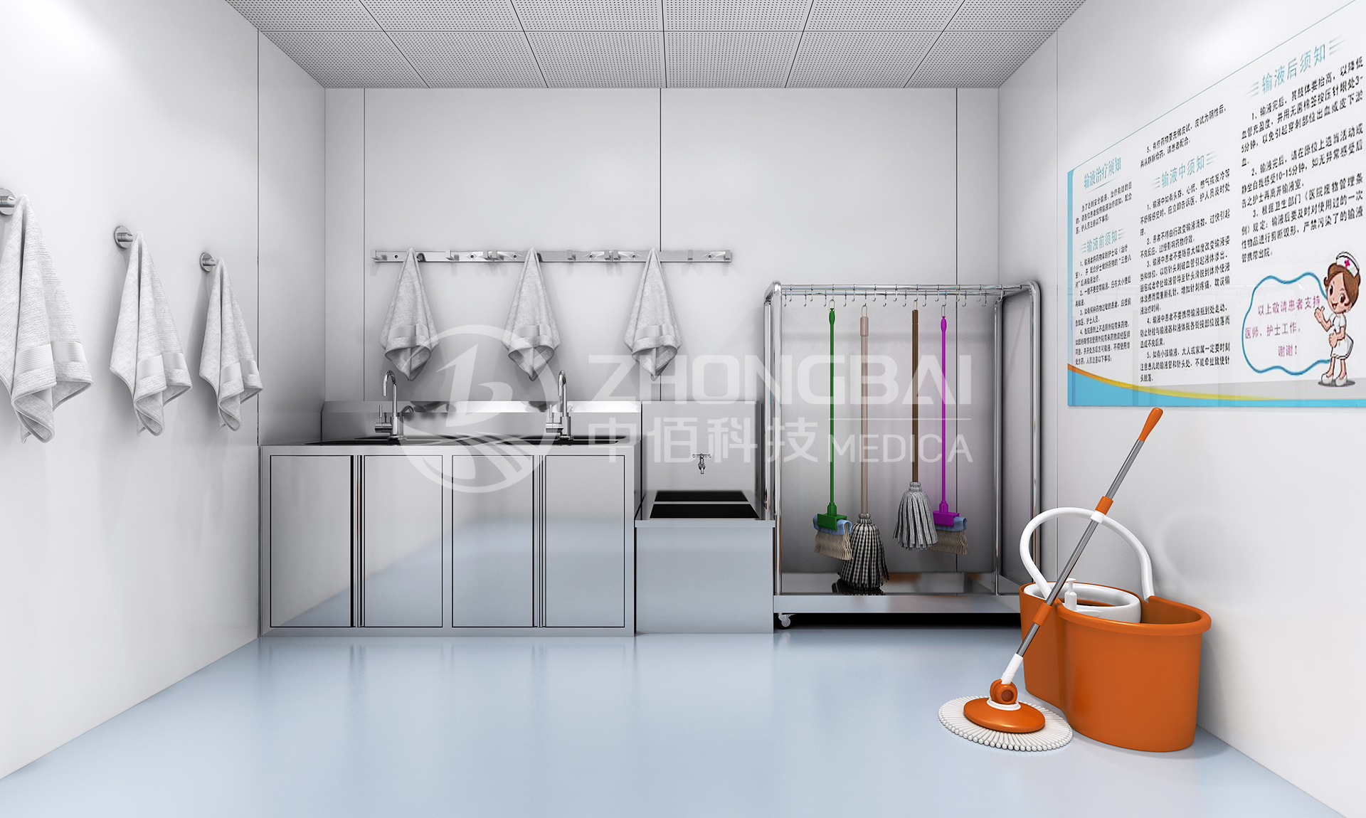 處置室一般在治療室近處,主要為醫(yī)護(hù)人員實(shí)施皮膚準(zhǔn)備及清潔灌腸等操作,臨時(shí)存放治療產(chǎn)生的醫(yī)療廢物及需要浸泡消費(fèi)的醫(yī)療物品的專(zhuān)用工作室。